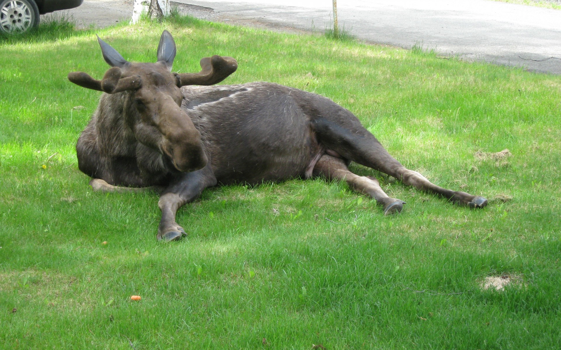 Скачать обои для рабочего стола На траве зеленой лось и фото