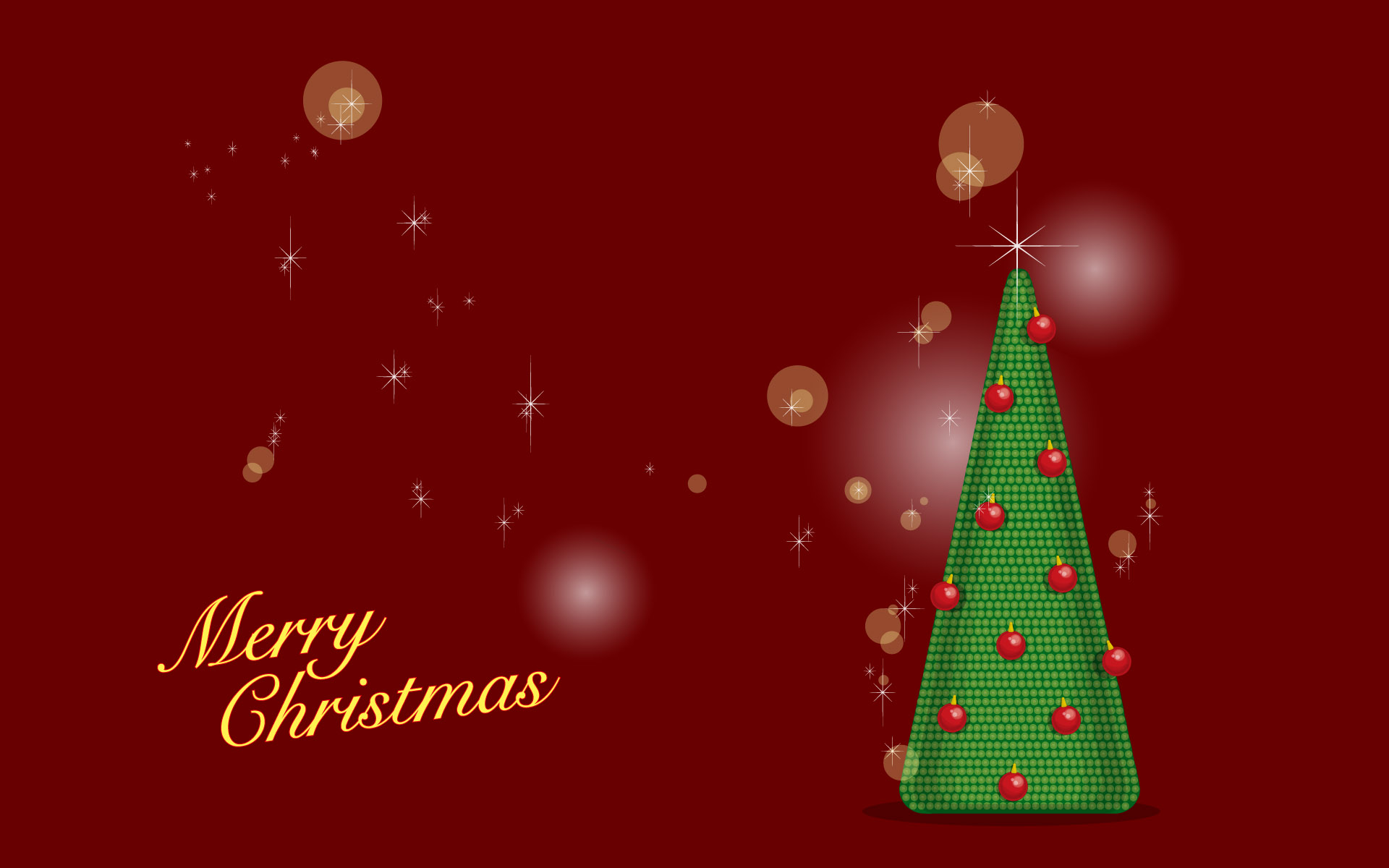 Скачать обои для рабочего стола На вишневом фоне елка и надпись и фото