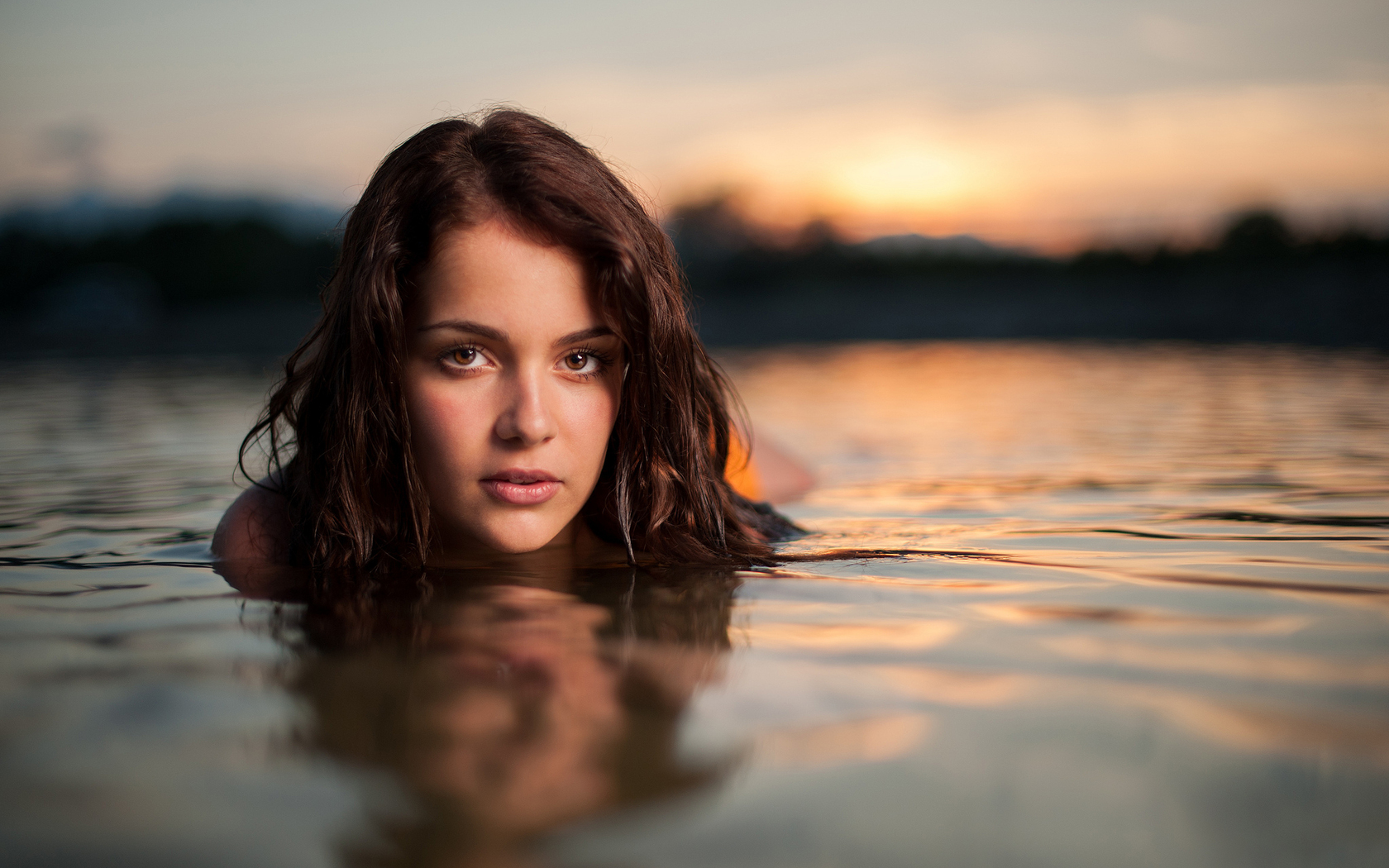 Скачать обои для рабочего стола На закате головой из воды и фото