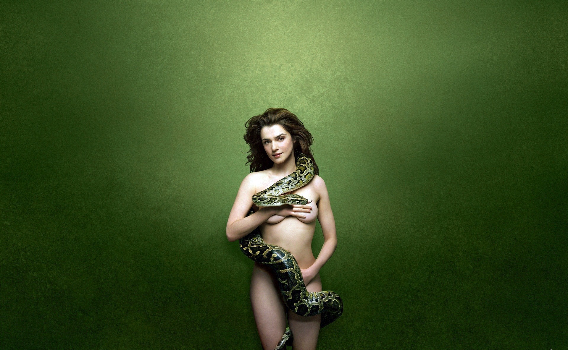 Скачать обои для рабочего стола На зеленом фоне нагая со змеей и фото