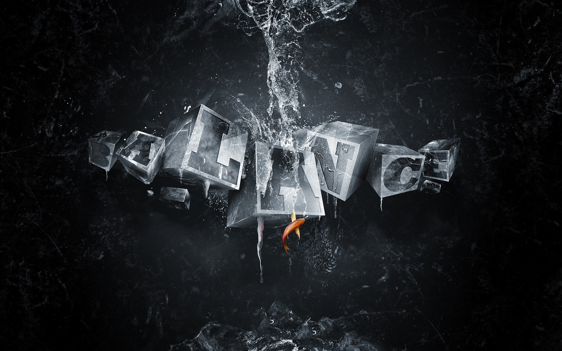 Скачать обои для рабочего стола Надпись на кубиках в воде и фото