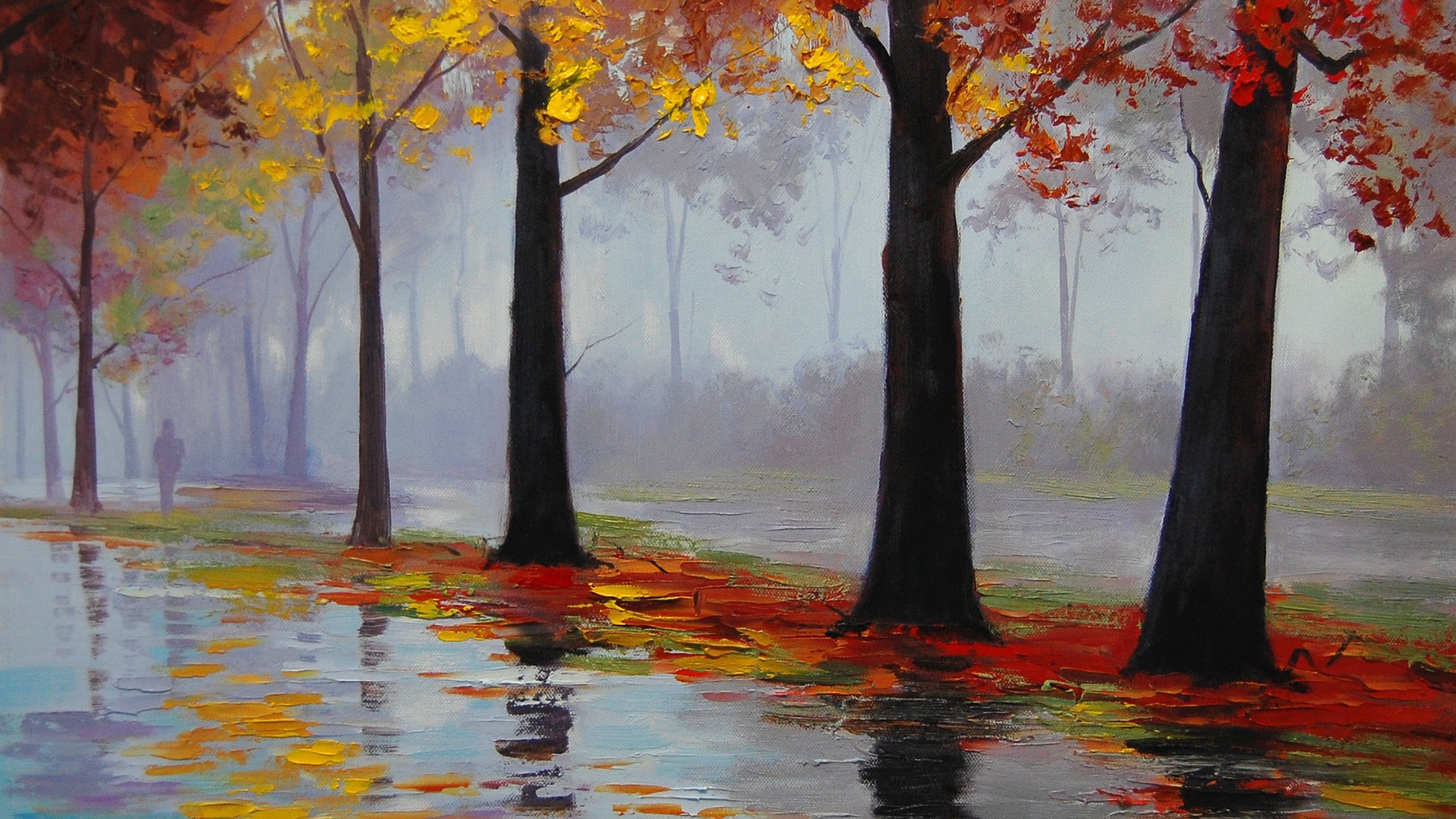 Похожие обои на Намокшая осенняя аллея: