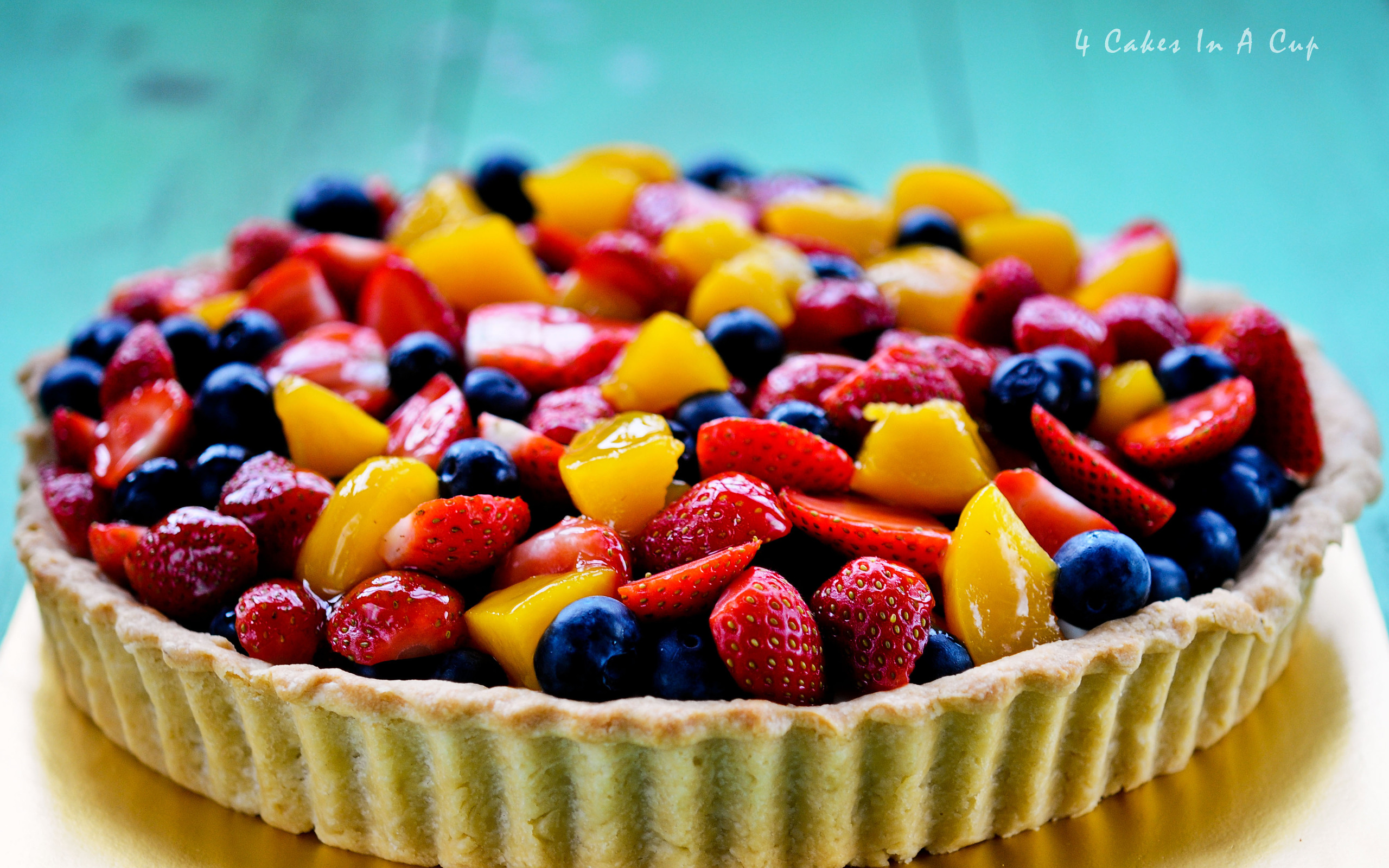 Скачать обои для рабочего стола Нарезанные фрукты в испеченной тарелке и фото