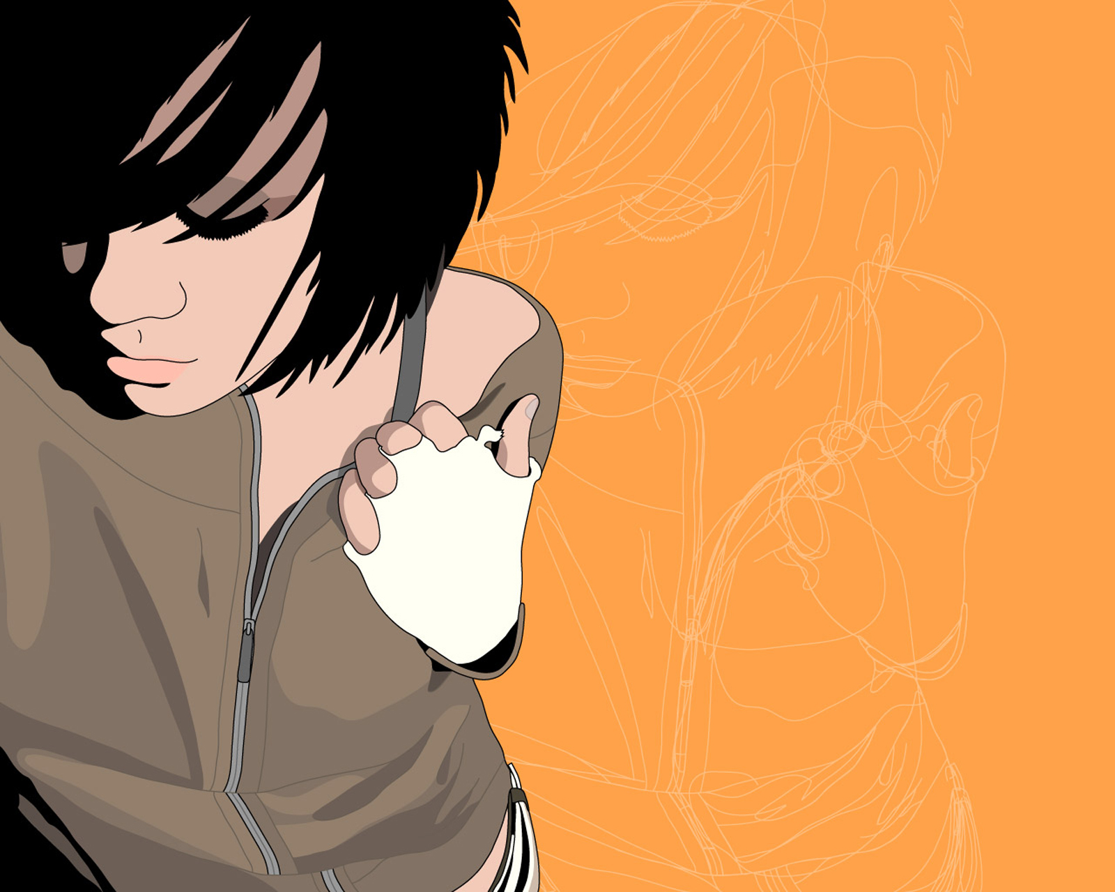 Скачать обои для рабочего стола Нарисованная брюнетка и фото
