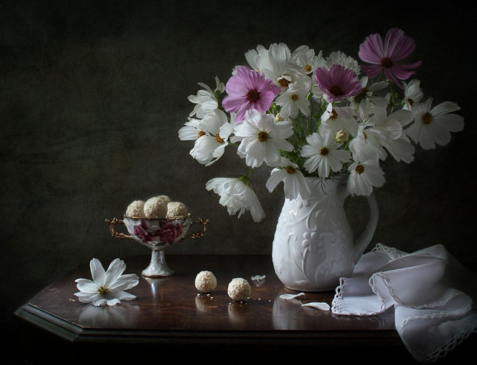 Скачать обои для рабочего стола Натюрморт - Нежность утренних клематисов и фото