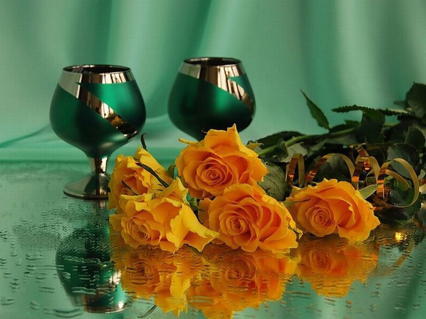 Скачать обои для рабочего стола Натюрмотрт с розами и фото