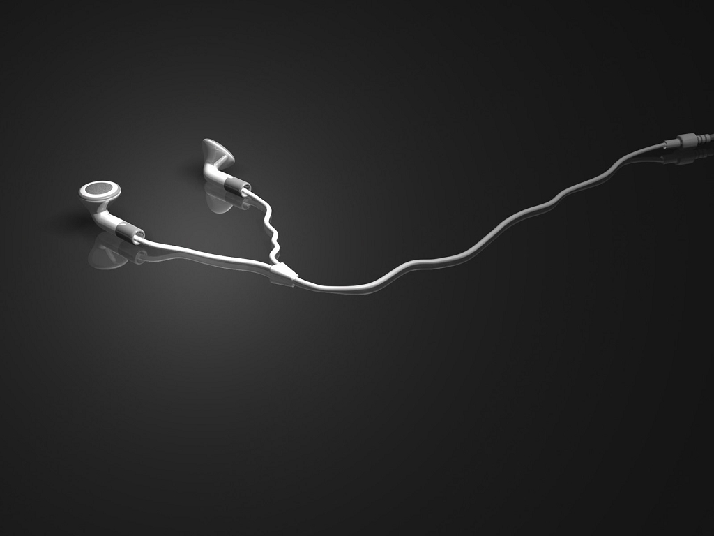 Скачать обои для рабочего стола Наушники с проводами и фото