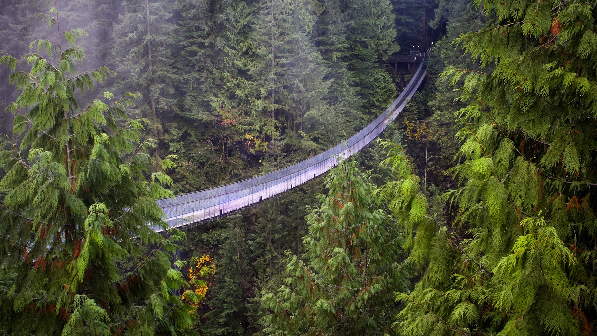 Скачать обои для рабочего стола Навесной мост в лесу и фото