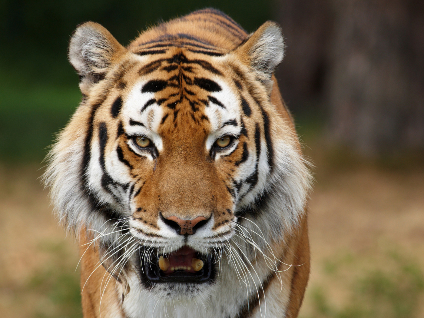 Скачать обои для рабочего стола Не очень добрый тигра и фото