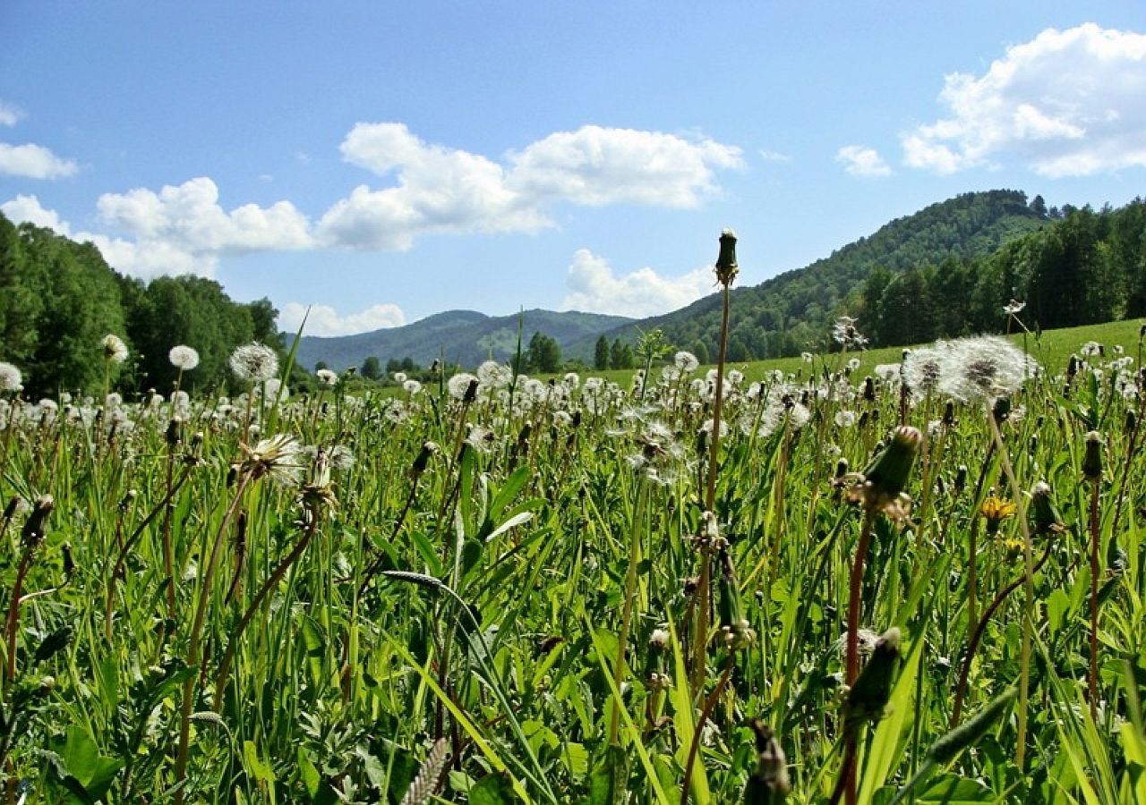 Скачать обои для рабочего стола Небо, горы, одуванчики и фото