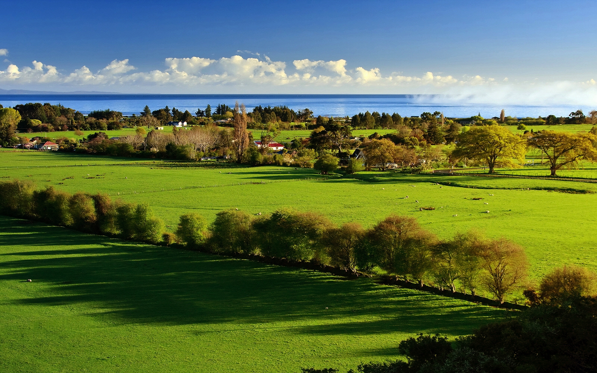 Скачать обои для рабочего стола Небольшая деревня в поле и фото