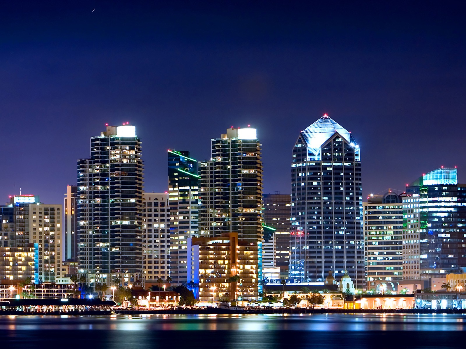 Скачать обои для рабочего стола Небоскрёбы ночью и фото