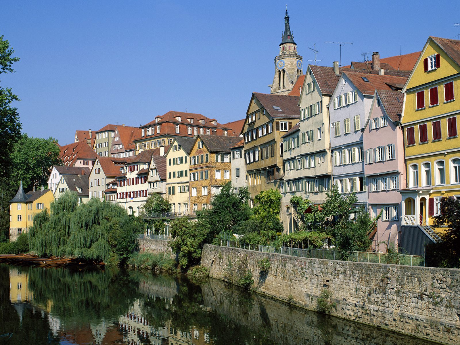 Обои Neckar River and Town View, Tubingen, Baden-Wurttemberg, Germany