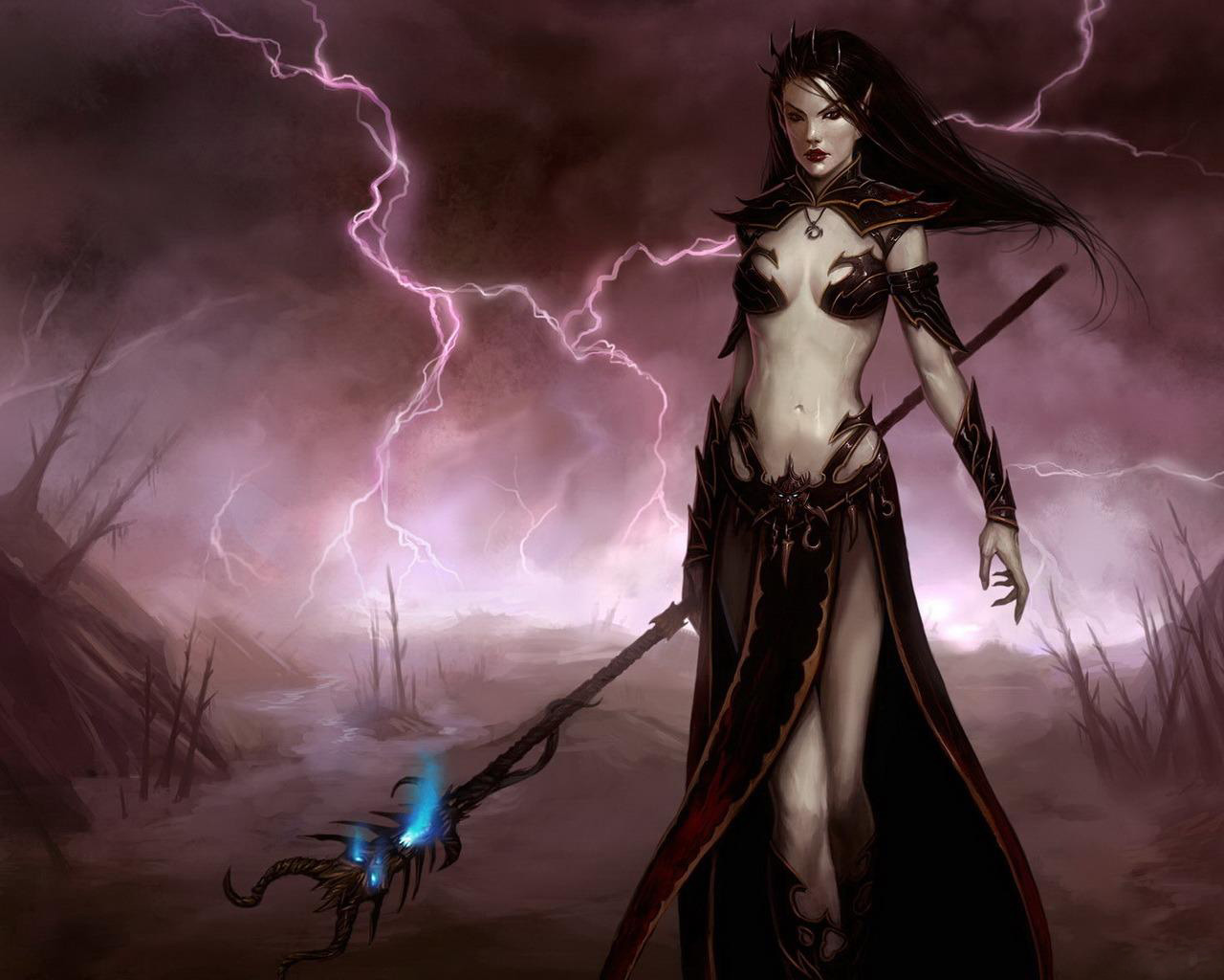 Скачать обои для рабочего стола Некромантка, повелительница молний и фото