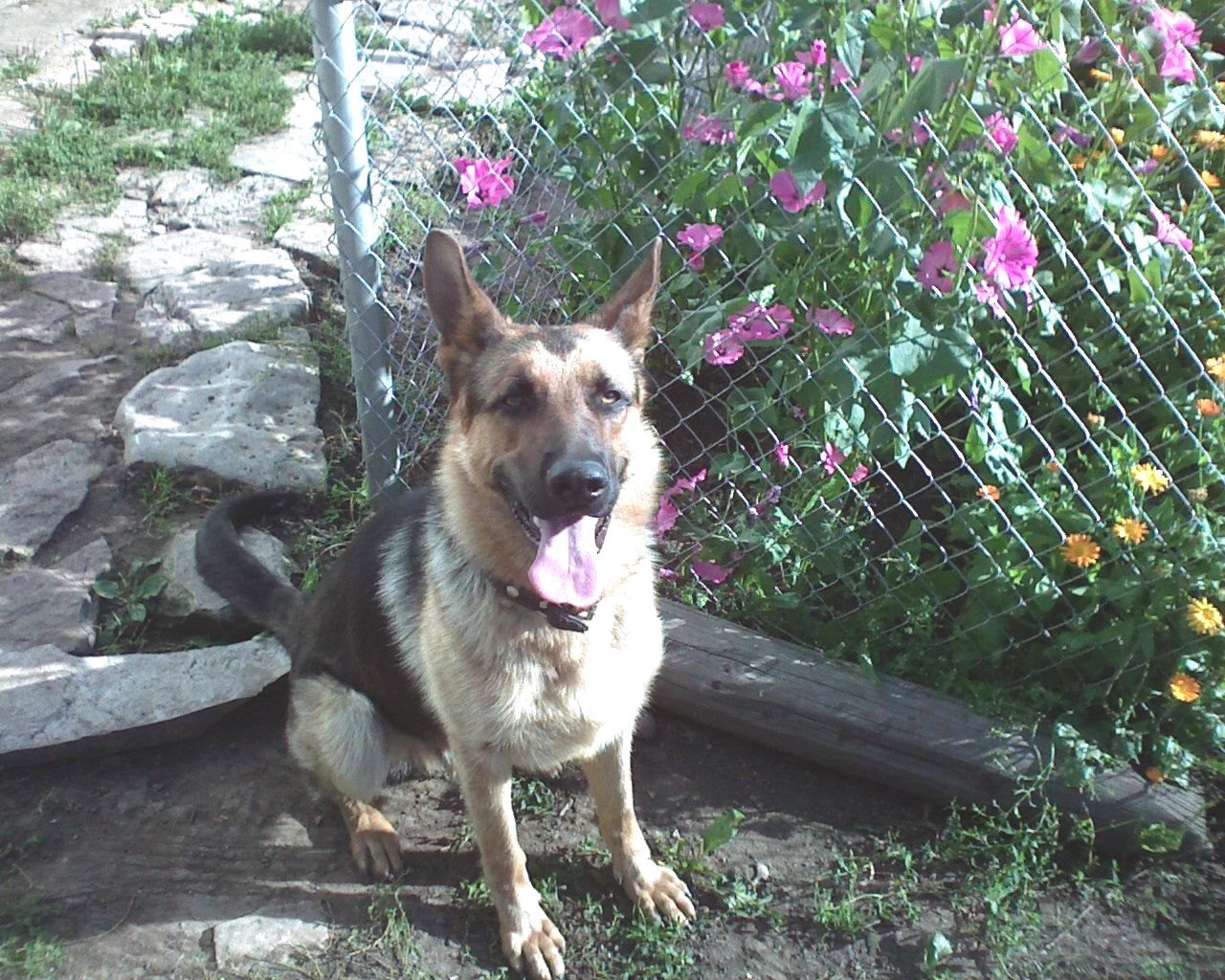 Скачать обои для рабочего стола Немецкая овчарка с цветами и фото
