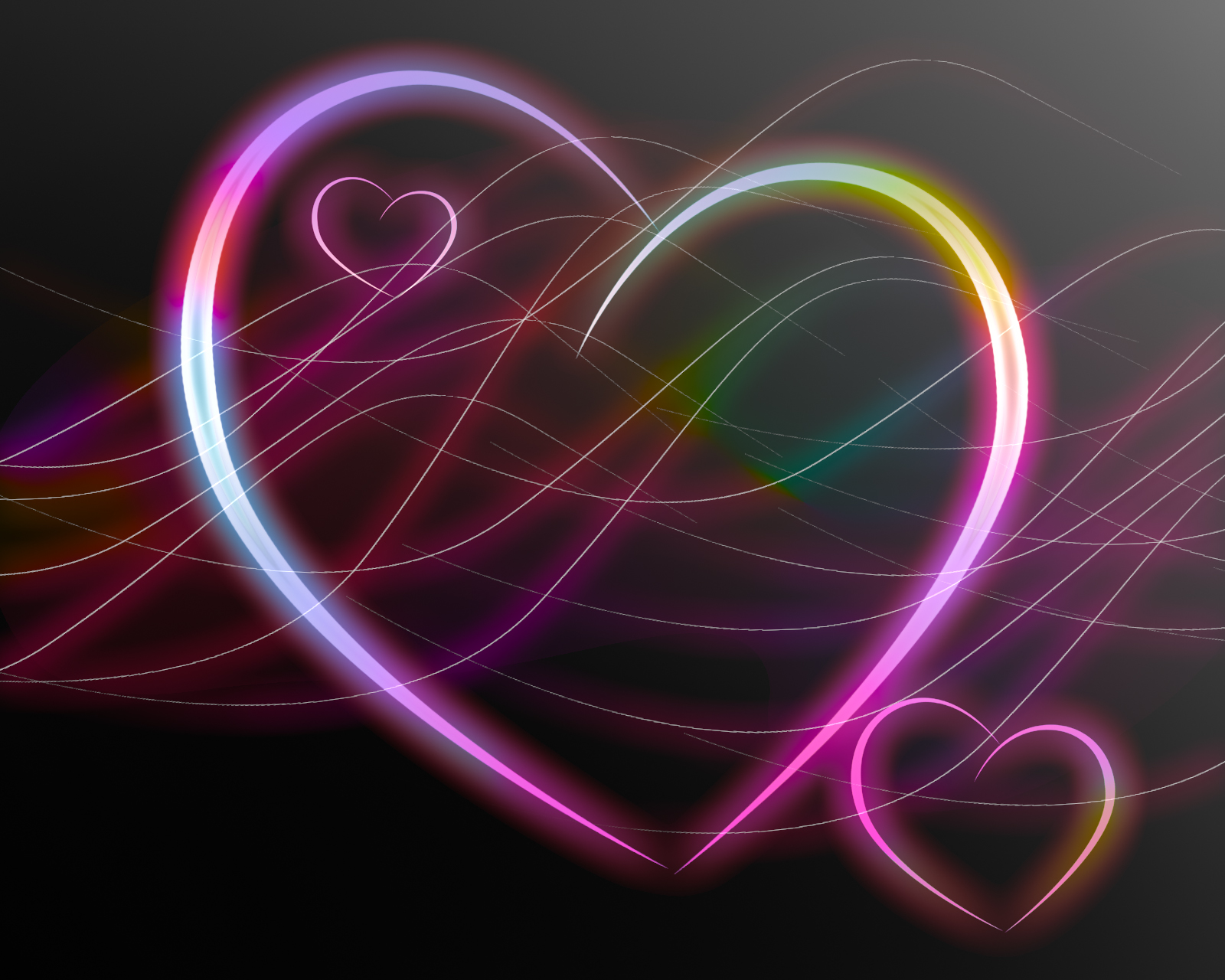 Скачать обои для рабочего стола Неоновые сердца, линии и фото
