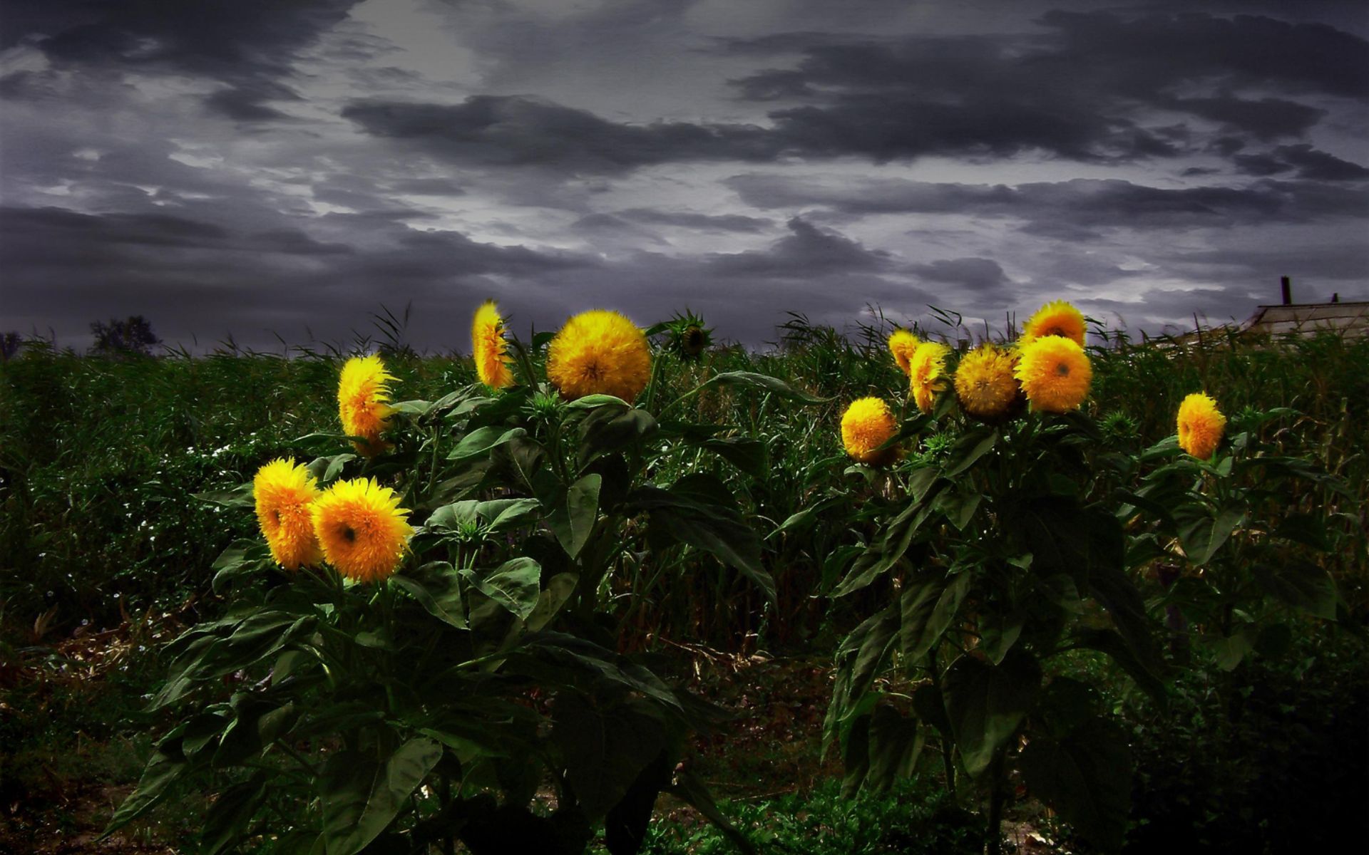 Скачать обои для рабочего стола Непогода и яркие цветочки и фото