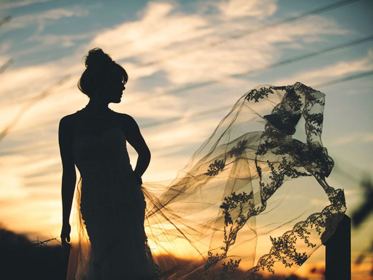 Скачать обои для рабочего стола Невеста на фоне заката и фото