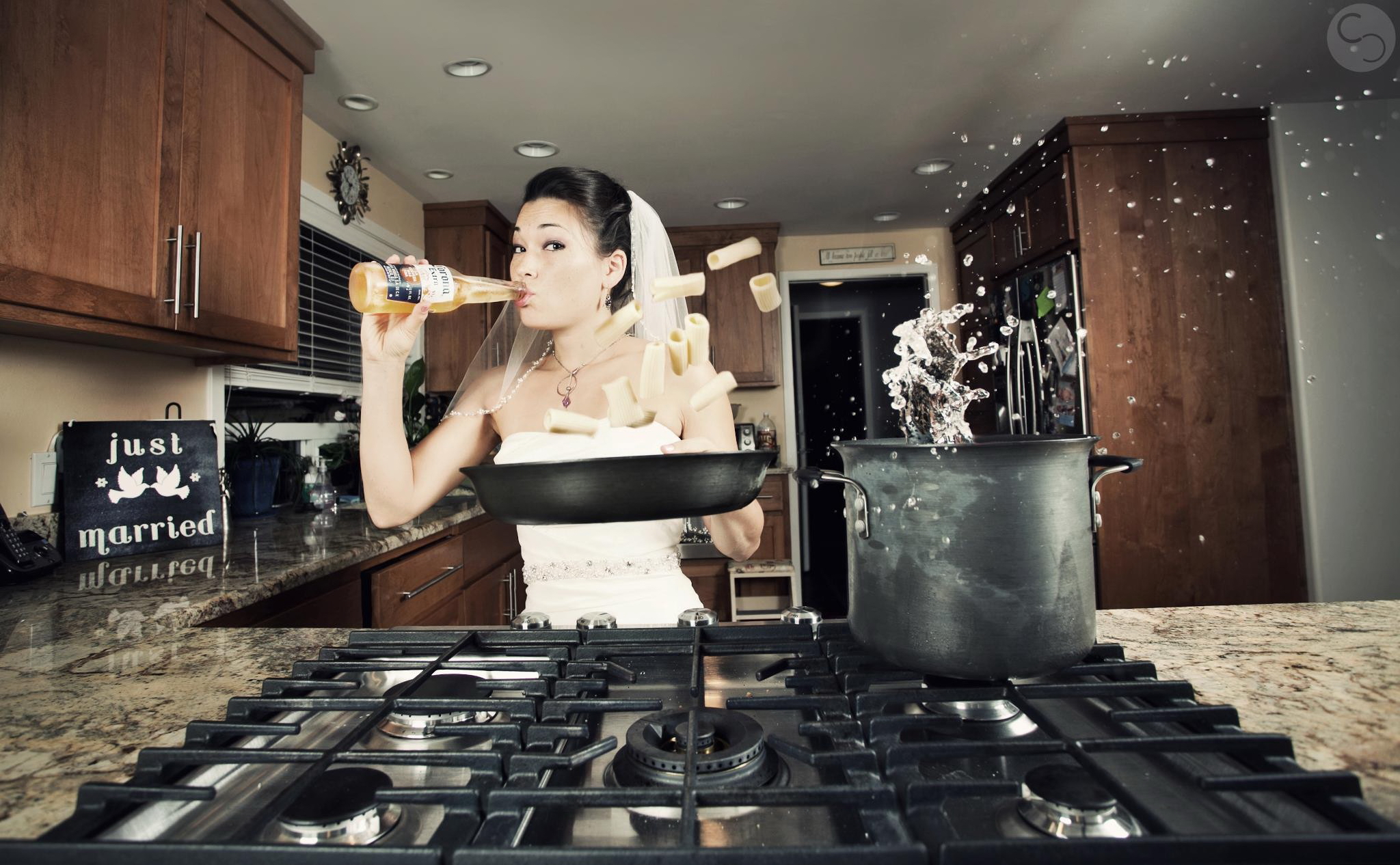 Скачать обои для рабочего стола Невеста на кухне и фото