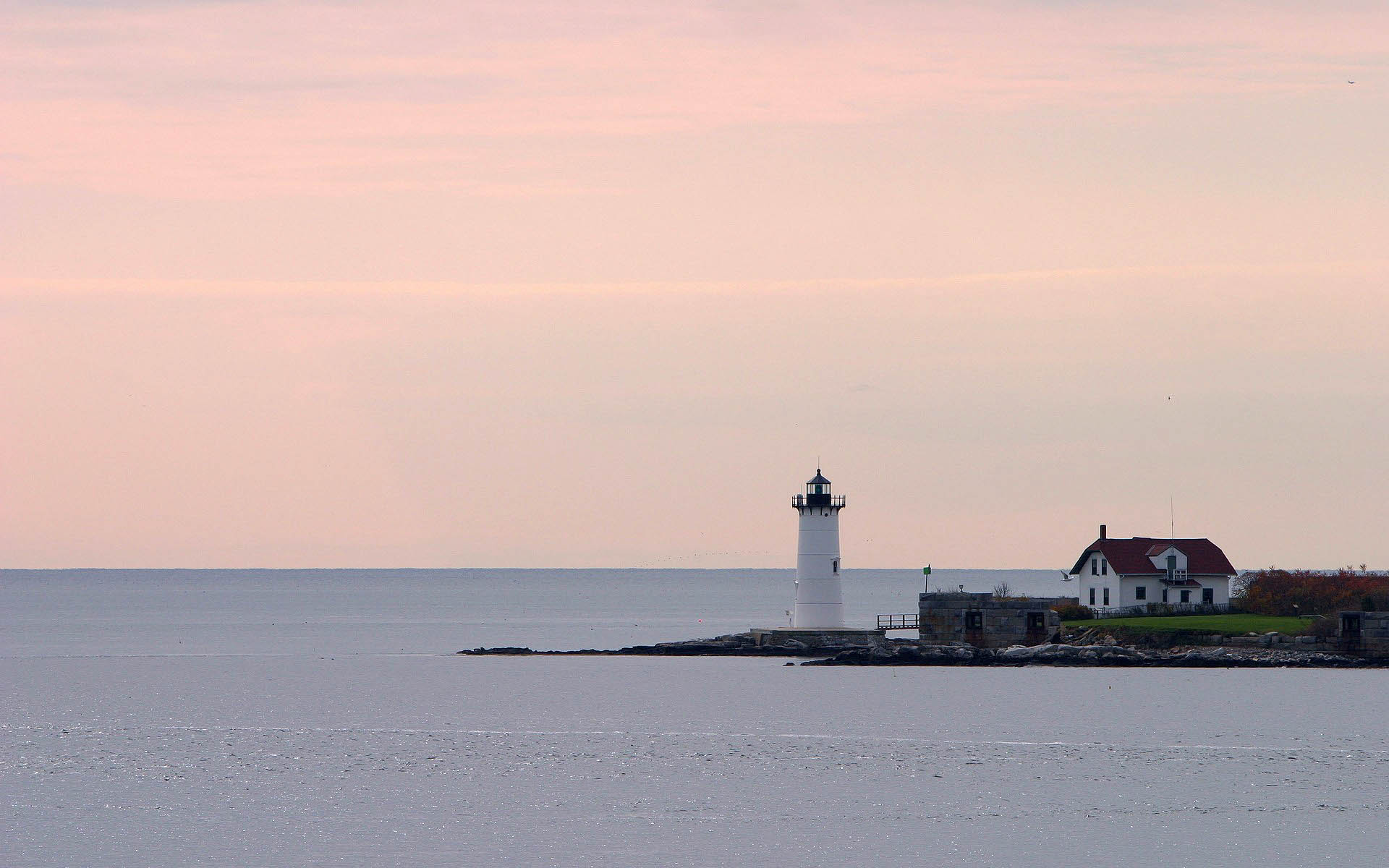 Скачать обои для рабочего стола Невысокий белый маяк и фото