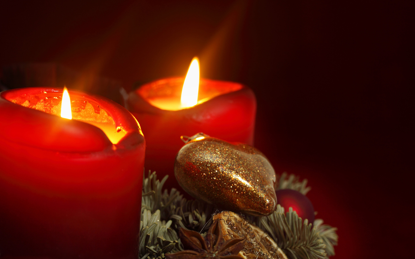Скачать обои для рабочего стола New Year, красные свечи, игрушки и фото