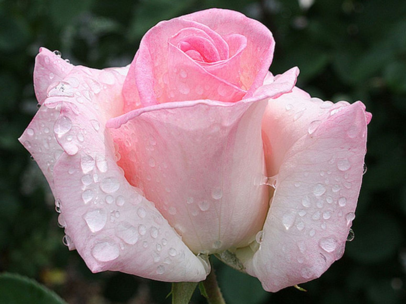 Скачать обои для рабочего стола Нежная роза в каплях и фото