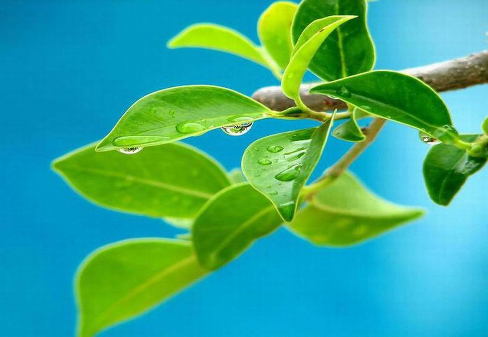 Скачать обои для рабочего стола Нежные листочки в каплях и фото