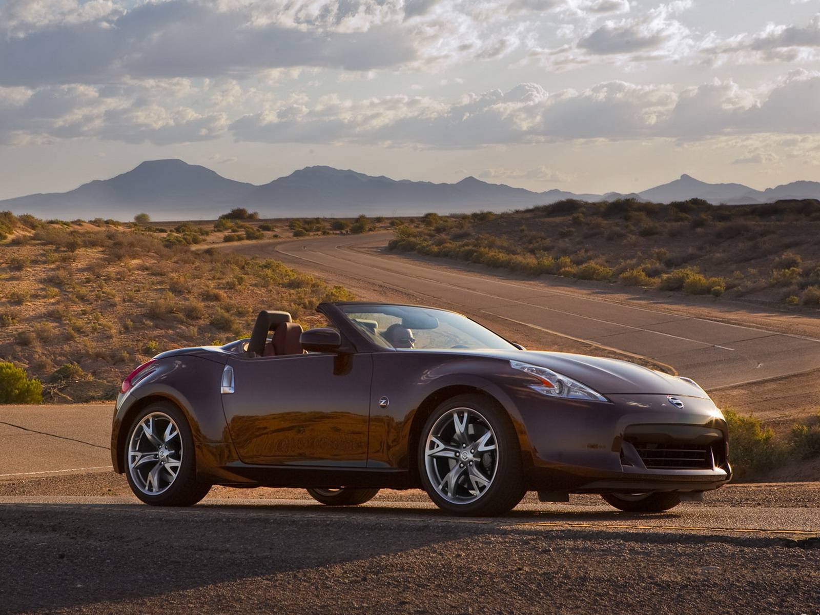 Скачать обои для рабочего стола Nissan 370Z вид авто на фоне гор и фото