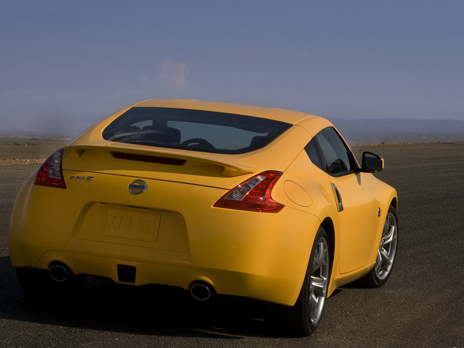 Скачать обои для рабочего стола Nissan 370Z вид авто сзади под другим углом к камере и фото