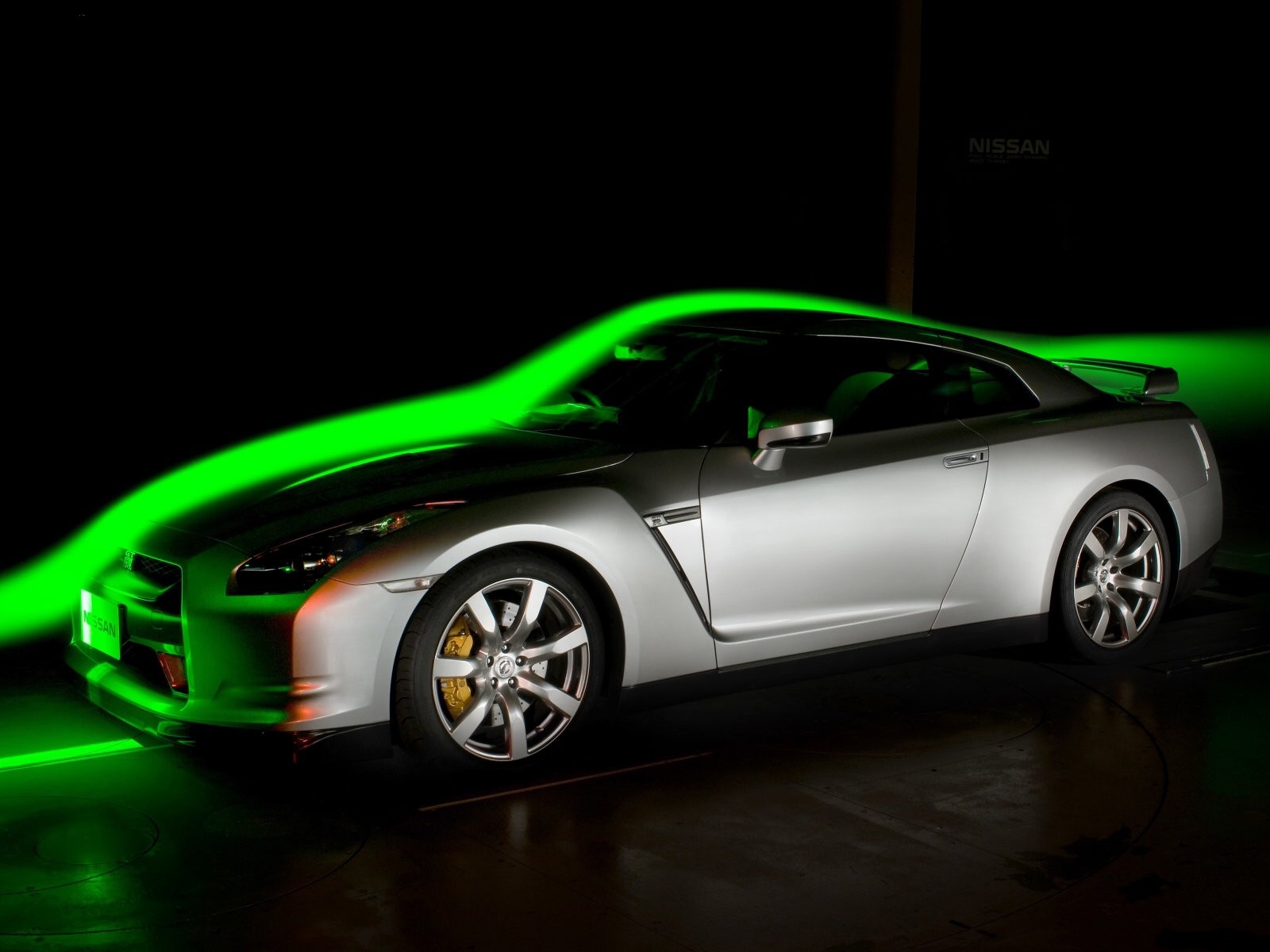 Скачать обои для рабочего стола Nissan GT-R в аэротрубе и фото