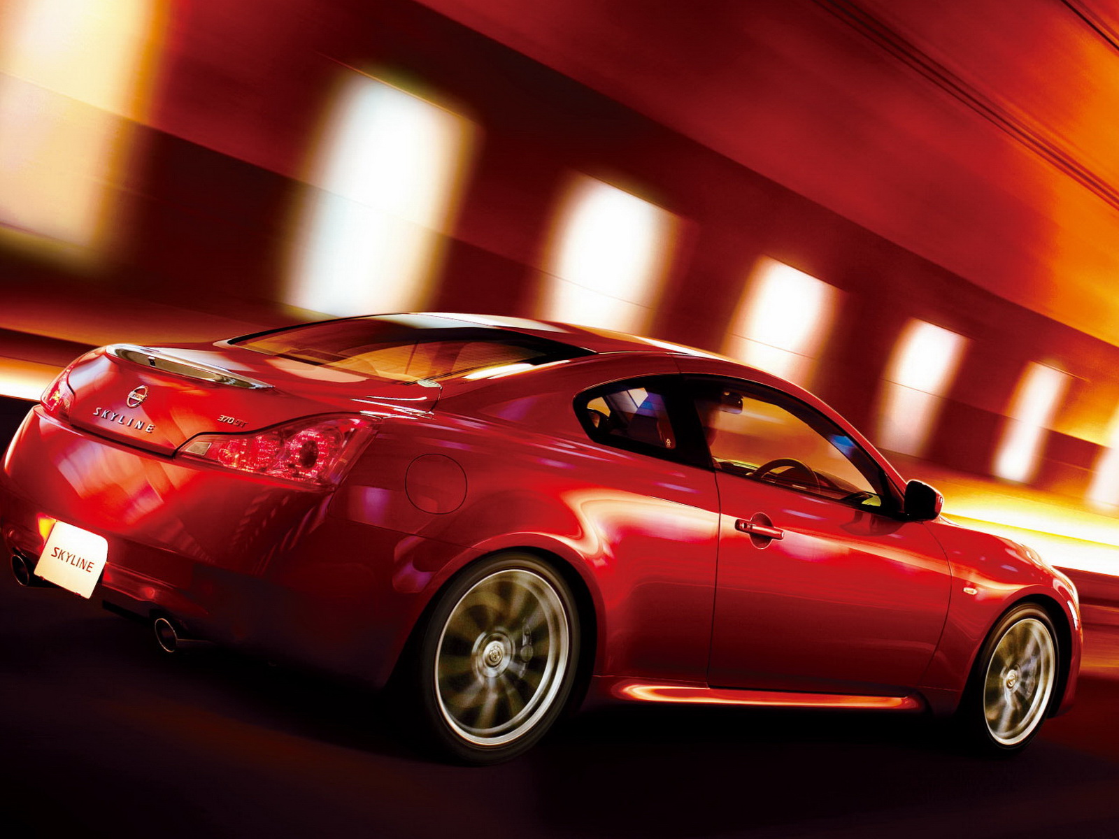 Обои Nissan Skyline Coupe 2008 вид авто со стороны объектива под углом