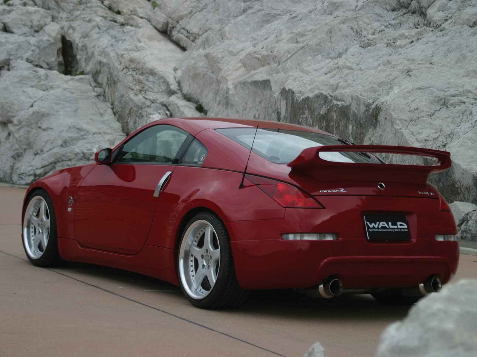 Скачать обои для рабочего стола Nissan wald 350z вид авто за городом и фото