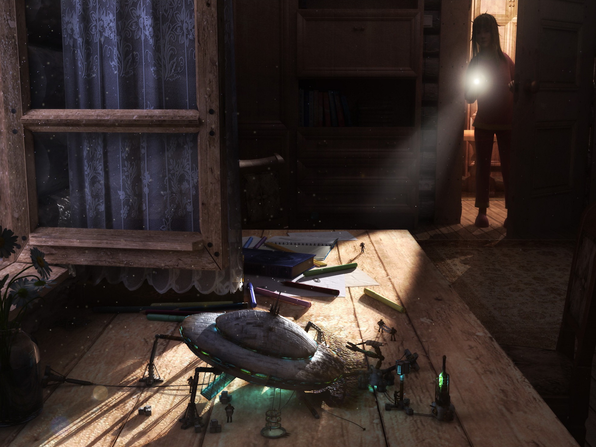 Скачать обои для рабочего стола НЛО в доме и фото