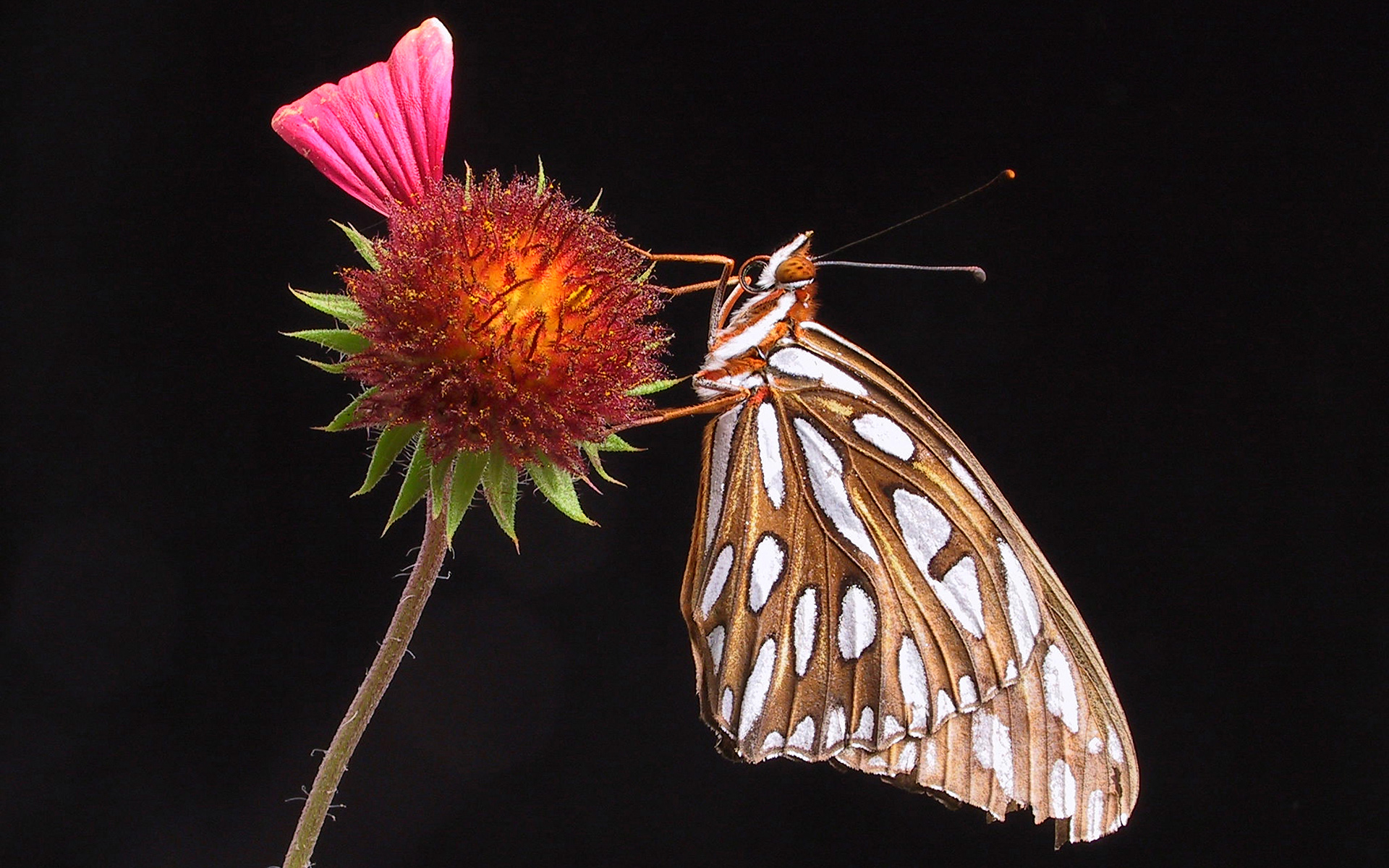 Скачать обои для рабочего стола Ночная бабочка на цветке и фото