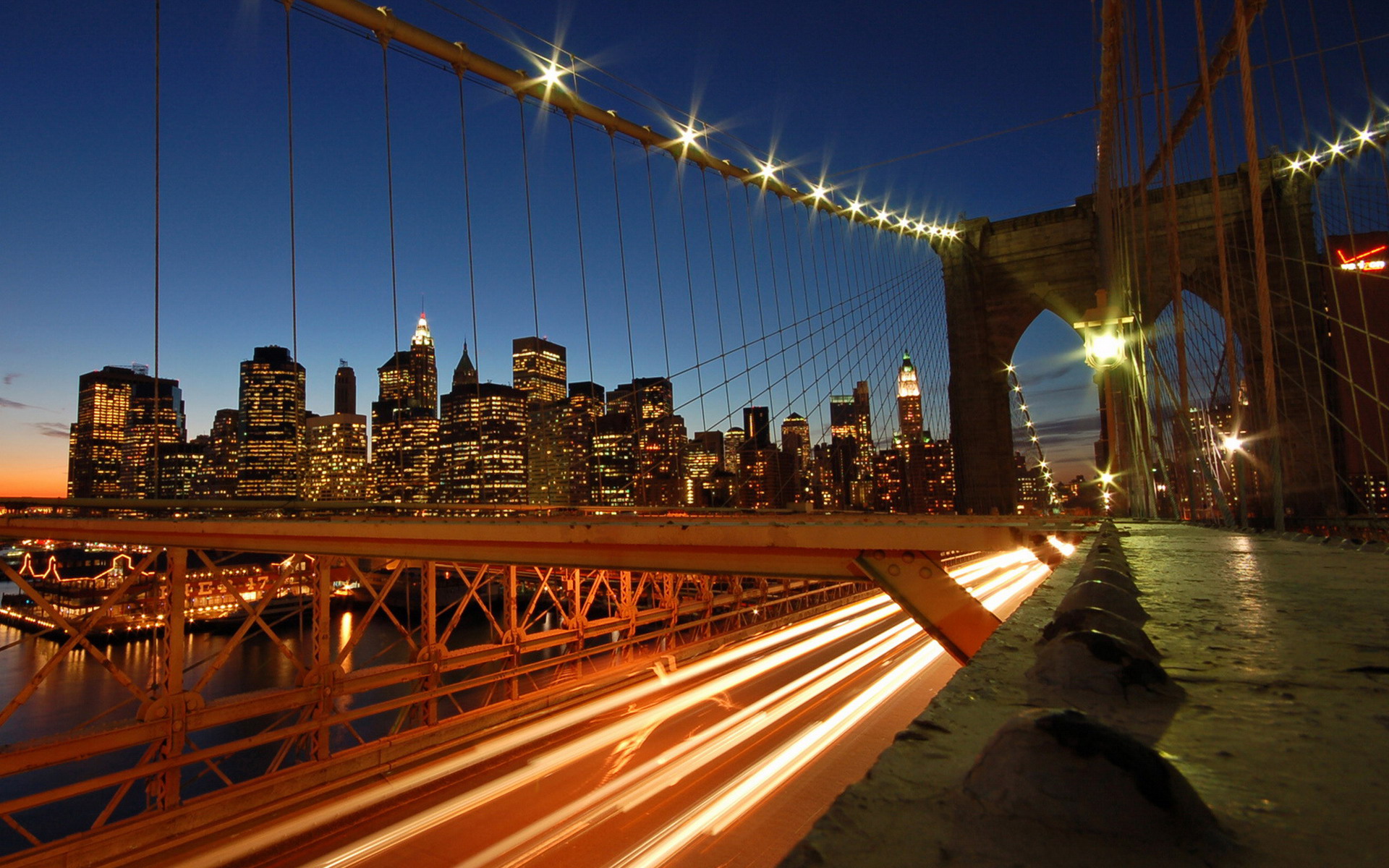 Скачать обои для рабочего стола Ночной город за мостом и фото