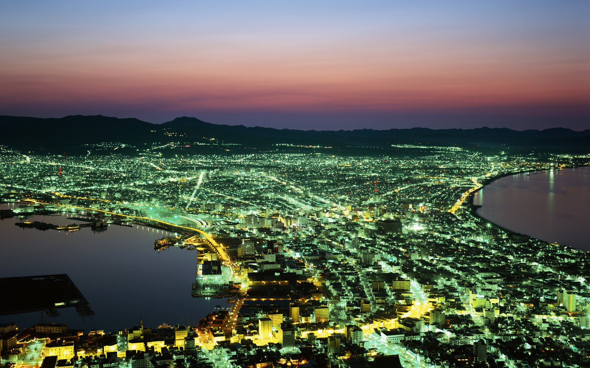 Скачать обои для рабочего стола Ночной мегаполис на море и фото