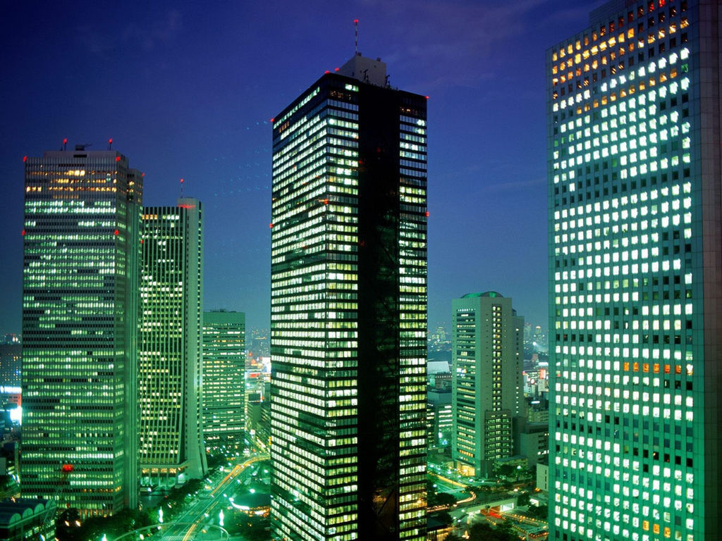 Скачать обои для рабочего стола Ночные небоскрёбы и фото