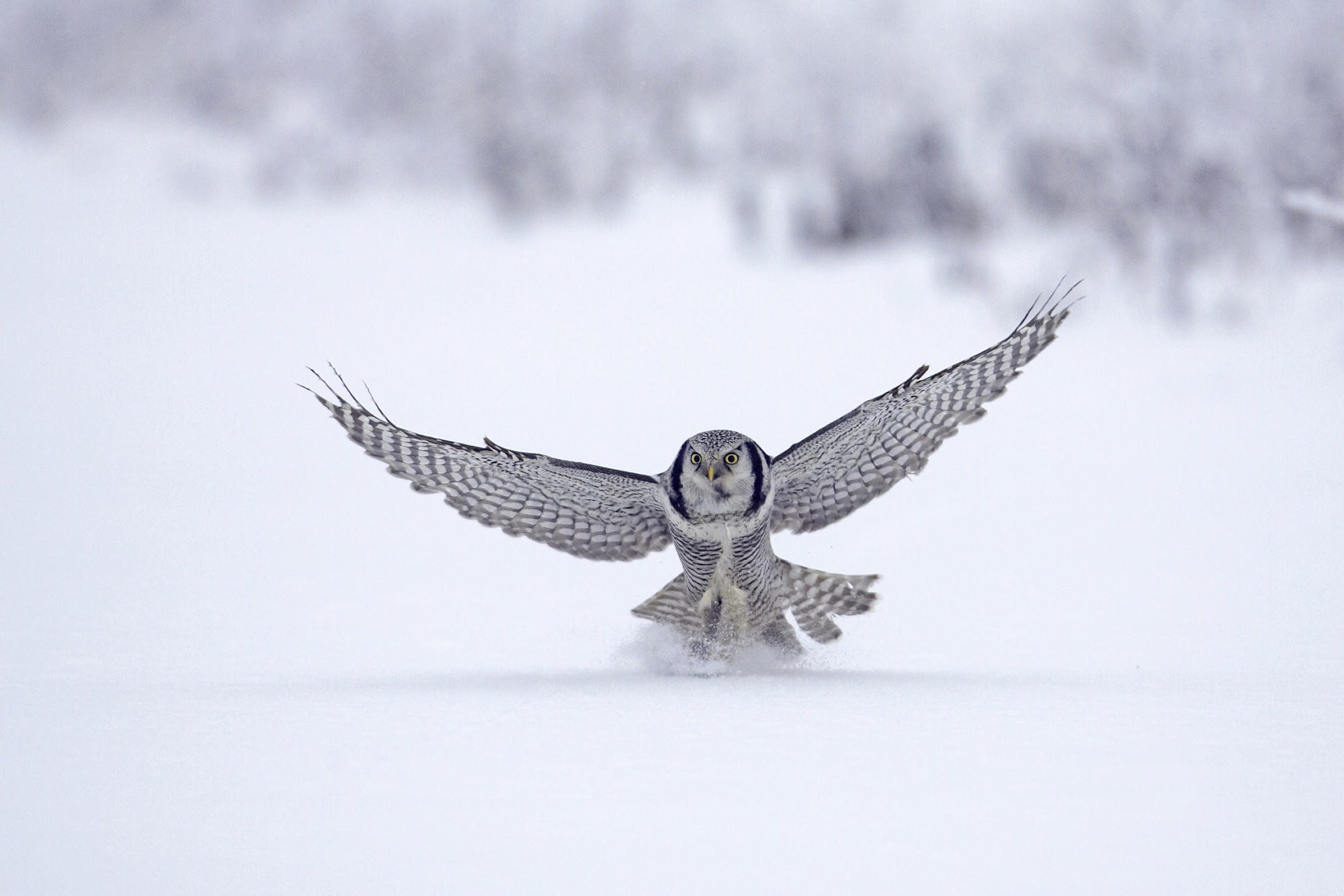 Скачать обои для рабочего стола Northern Hawk Owl, Finland и фото
