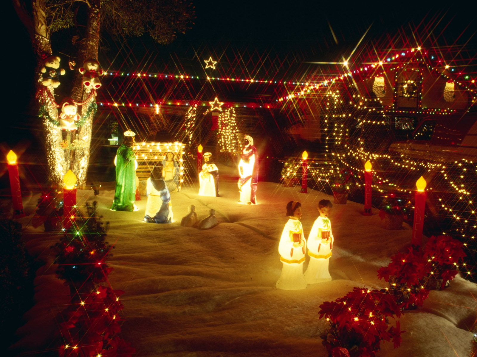 Обои Новогоднее настроение из ярких , зажженных игрушек и домов