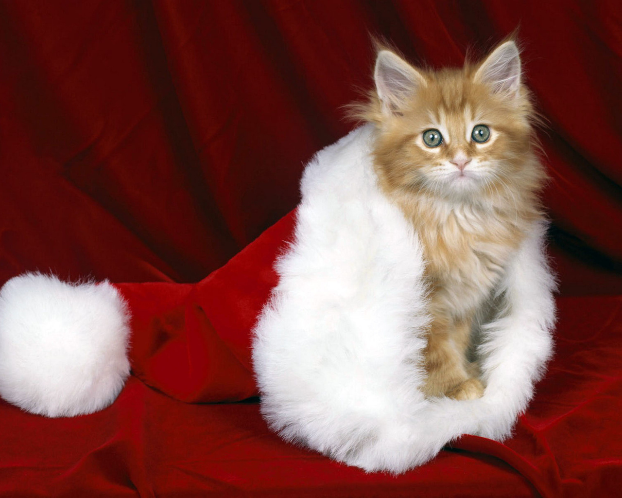 Скачать обои для рабочего стола Новогодний котенок и фото