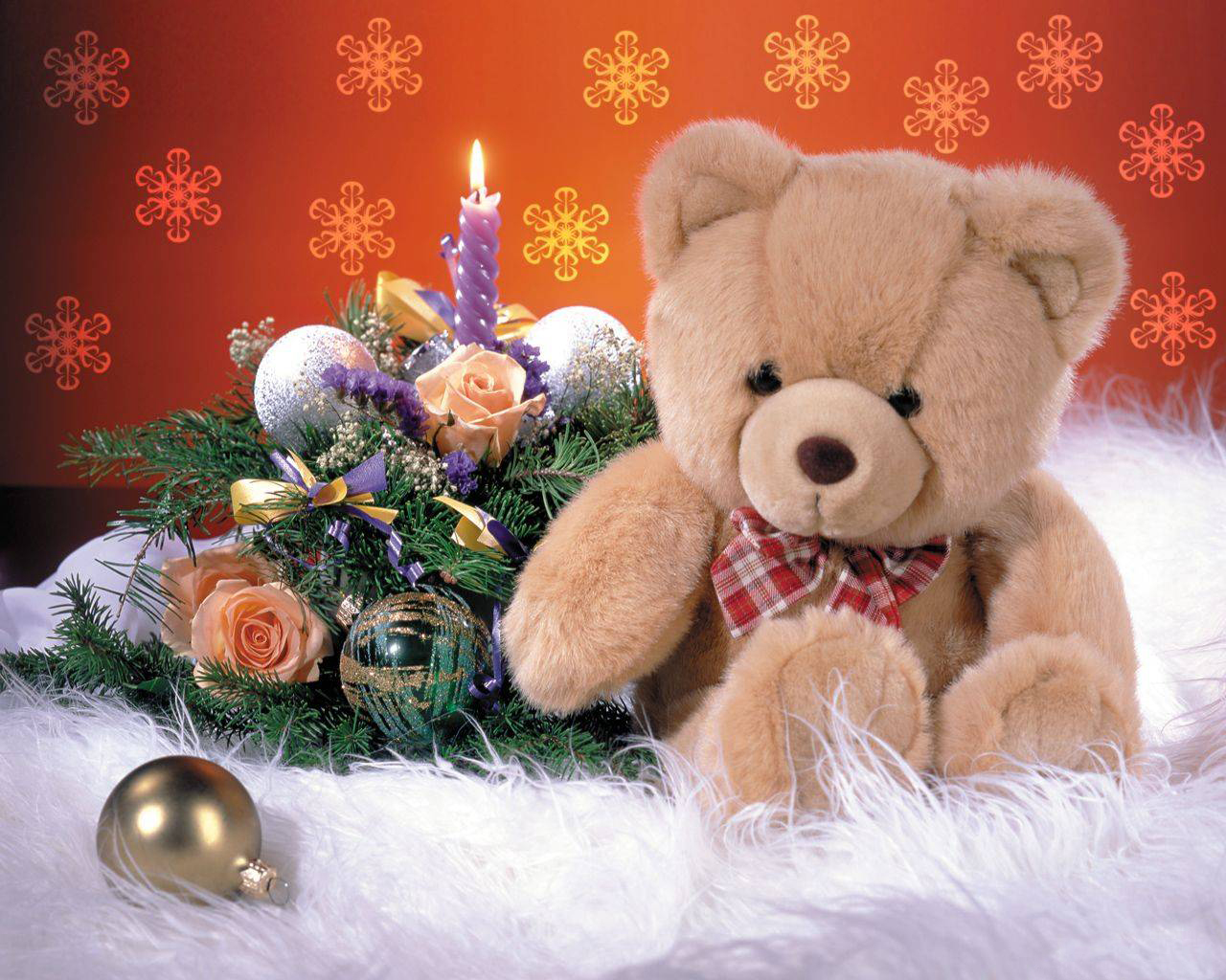 Скачать обои для рабочего стола Новогодний плюшевый медвежонок и фото
