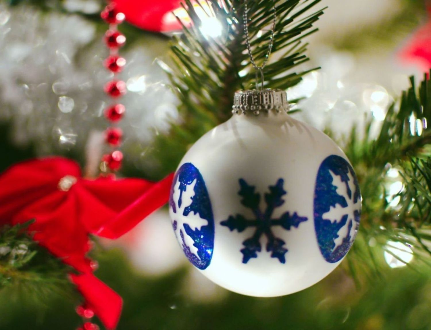 Скачать обои для рабочего стола Новогодний шар на ёлке и фото