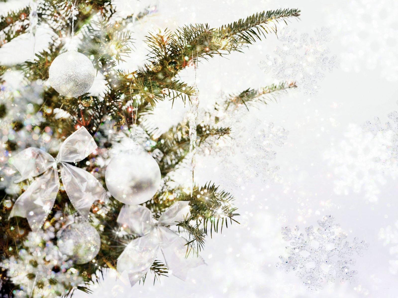 Скачать обои для рабочего стола Новогодняя ель в снегопад и фото