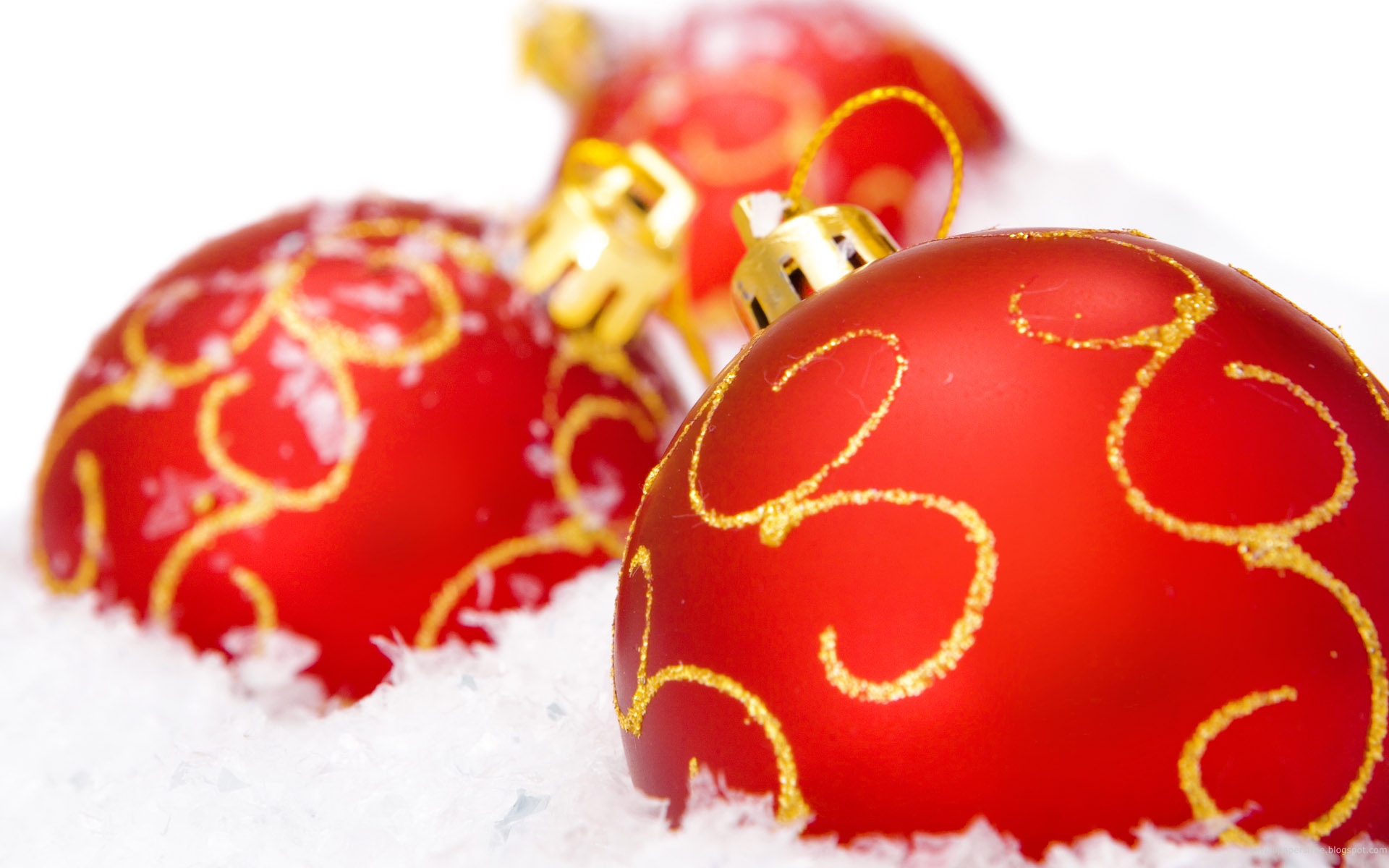 Скачать обои для рабочего стола Новый год игрушки на снегу и фото
