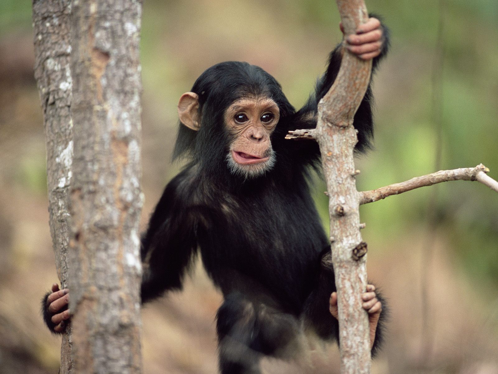 Скачать обои для рабочего стола Обезьяна на дереве и фото