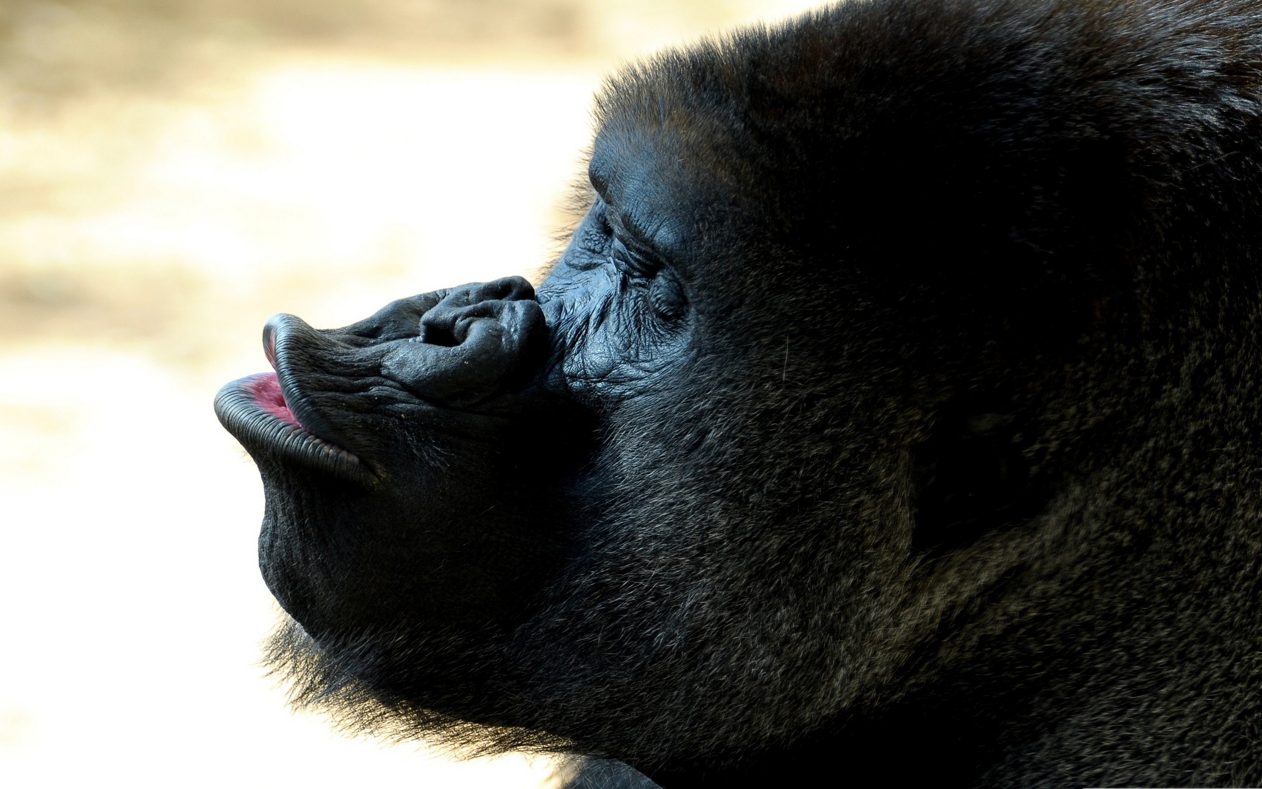 Скачать обои для рабочего стола Обезьяна призакрывши глаза и фото