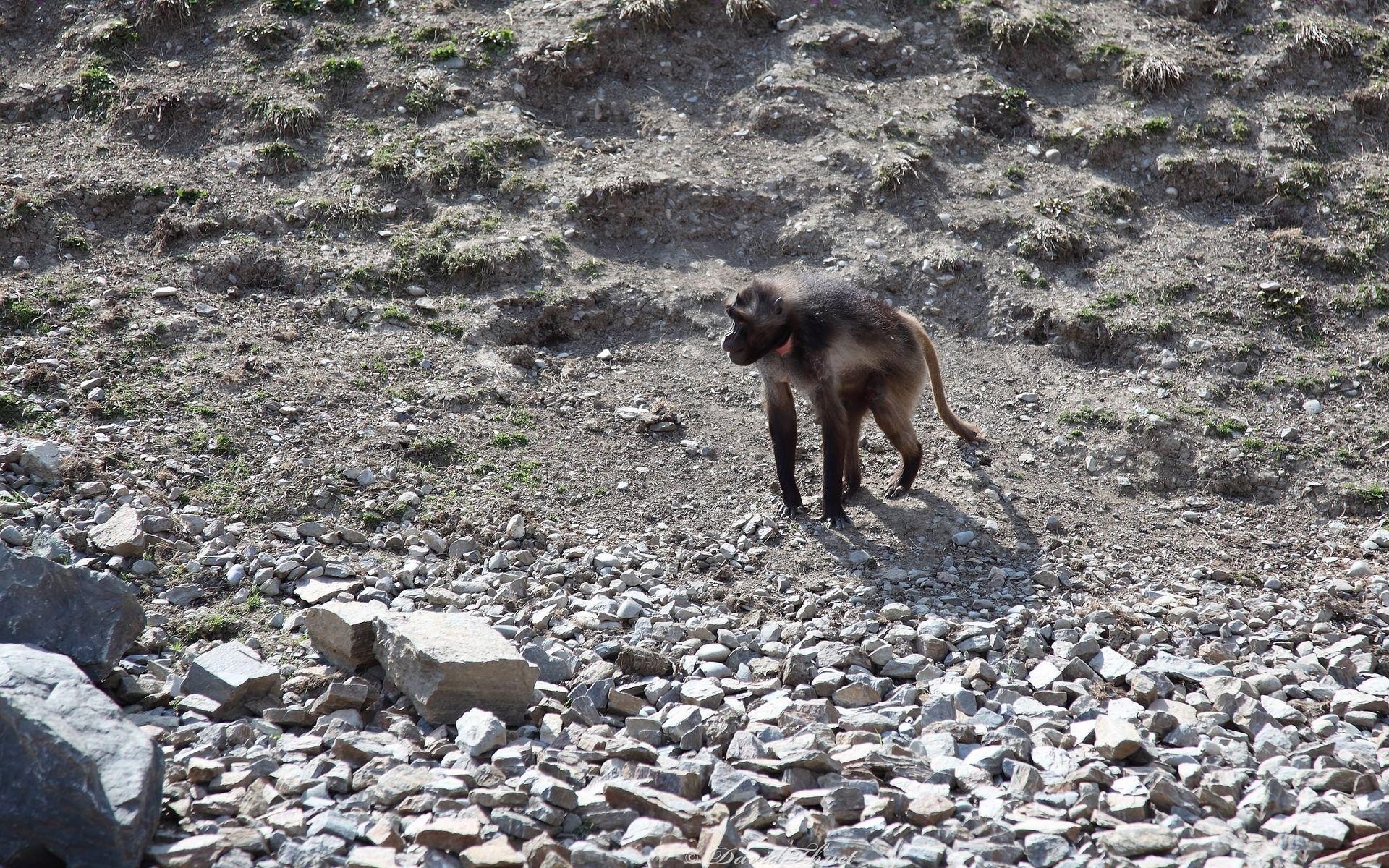 Скачать обои для рабочего стола Обезьяна у камней и фото