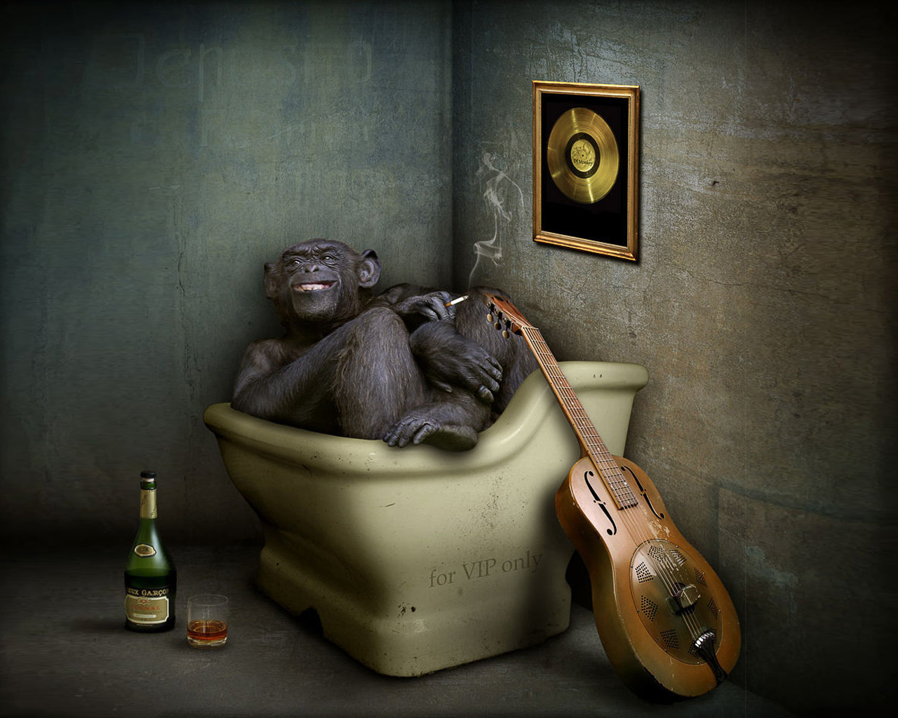 Похожие обои на Обезьянка с коньяком и гитарой: