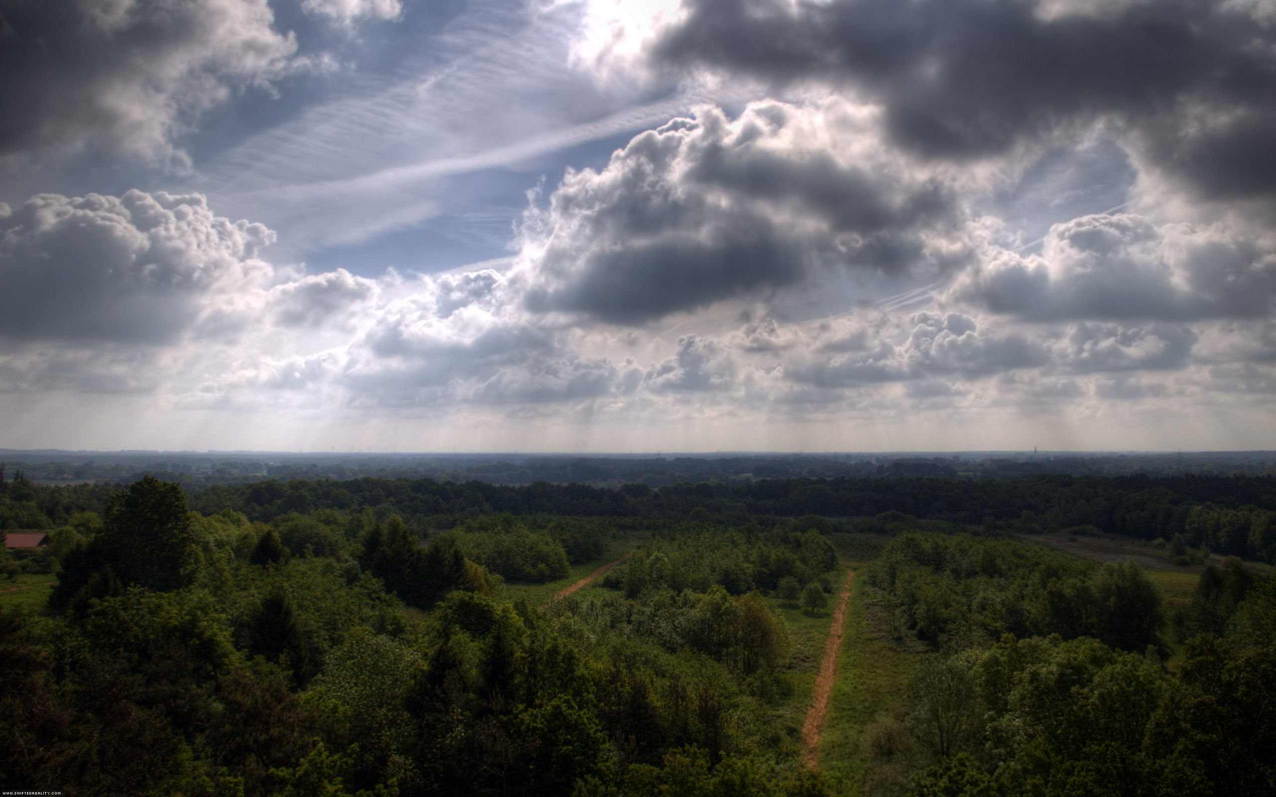Скачать обои для рабочего стола Облачное небо над зелеными просторами и фото