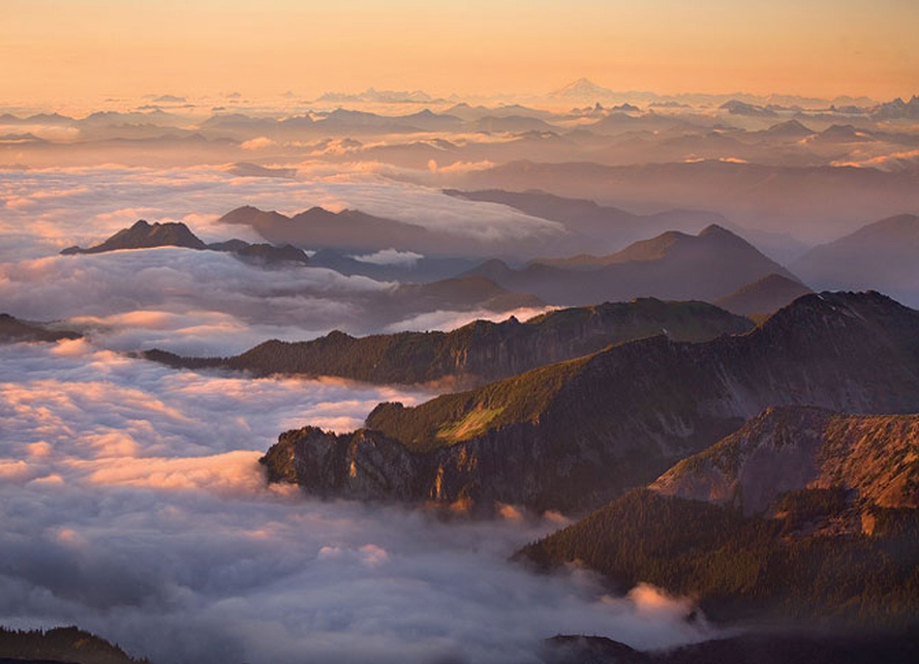 Скачать обои для рабочего стола Облака среди гор и фото